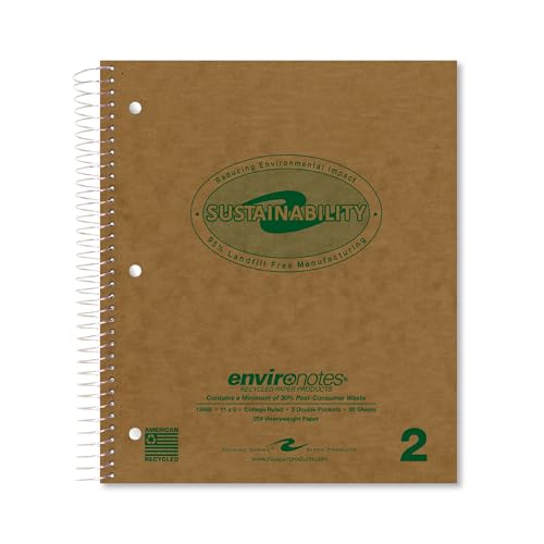 Roaring Spring Environotes Recycled Two Subject Notebook, 11″ x 9″, 80 Sheets, College Ruled, 3-Hole Punched, Perforated, Contains 2 Pockets, Made in the USA!
