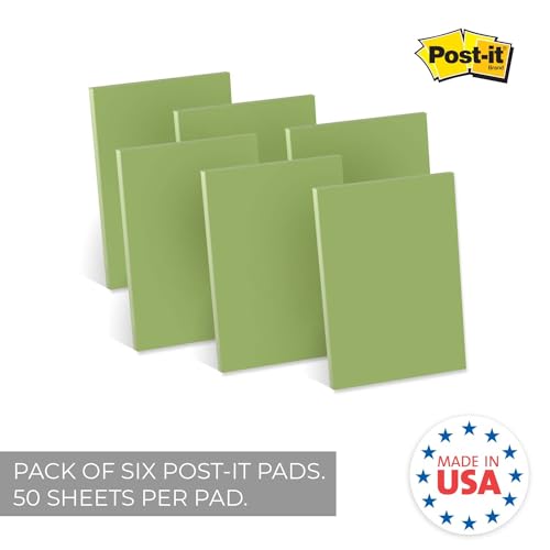 Trendy Spring Sage Blank Sticky Note Pads / 4″ x 6″ Recycled Sticky Notes/Set of Six Pads / 50 Sheets Per Pad/Made in The USA