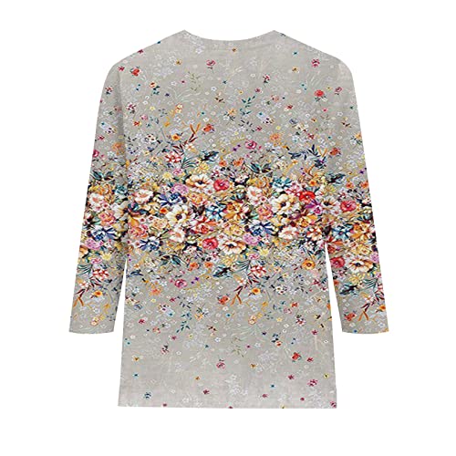 3/4 Length Sleeve Summer Tops for Women Classic Button Down Crewneck Shirts Floral Graphic Tees Dressy Casual Blouses