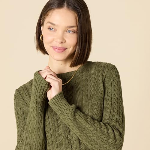 Amazon Essentials Women’s Fisherman Cable Long-Sleeve Crewneck Sweater (Available in Plus Size)