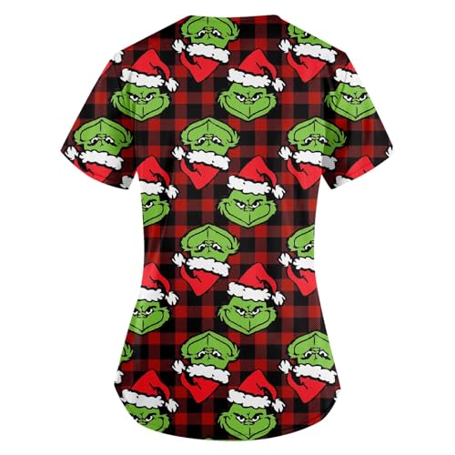 Christmas Scrub Tops Women 2024 Print Plus Size Shirts for Women V Neck Short Sleeve Tunic Blouse with Pockets
