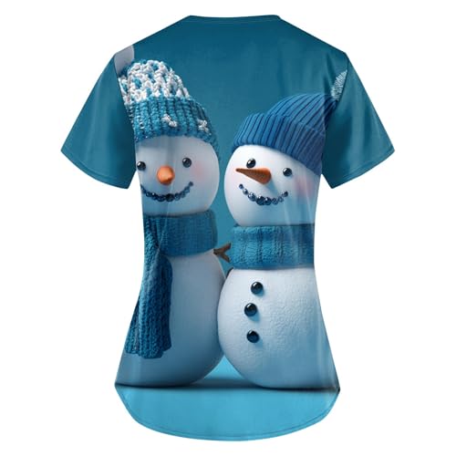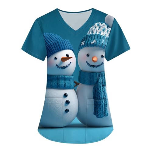Christmas Scrubs for Women Santa Claus Print Tops for Women V Neck Cartoon Pattern Short Sleeve Nursing Tops with Pockets