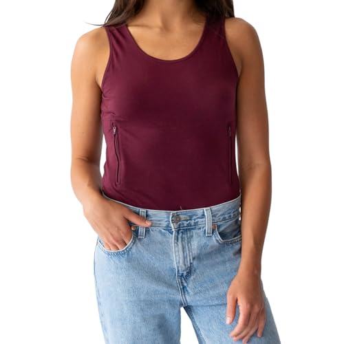 Clever Travel Companion Womens Tank Top with 1 Hidden Zipper Pocket, 100% Pickpocket Proof Holiday Tour Sleeveless Tee Shirt