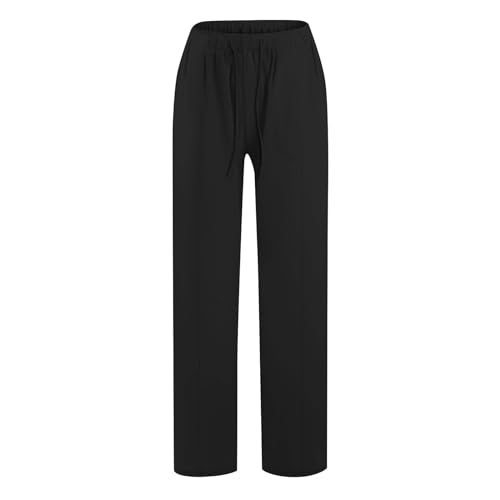 Cotton Linen Pants for Women Casual Summer Drawstring High Waist Palazzo Pants Solid Wide Leg Trousers with Pockets