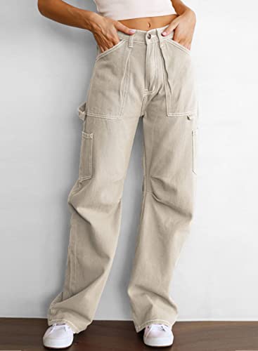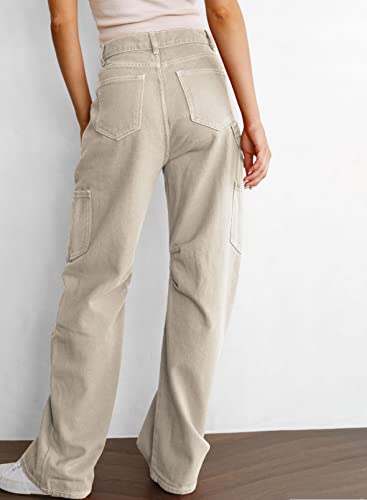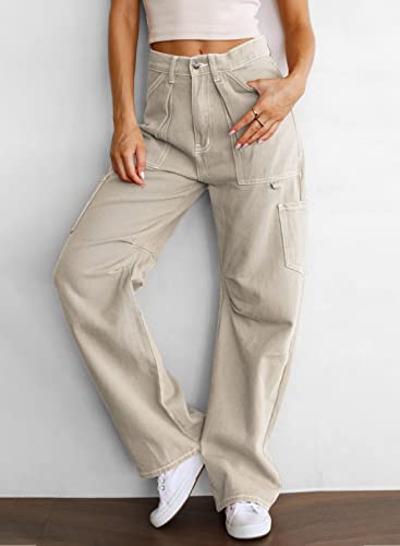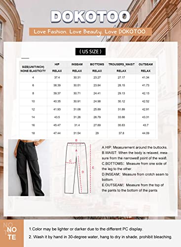 Dokotoo Women 6 Pockets High Waisted Cargo Pants Wide Leg Casual Pants Combat Military Trouser US 4-18