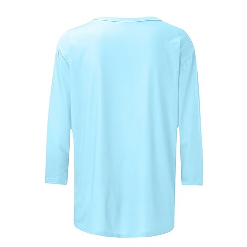 Fall Fashion 3/4 Sleeve Tops for Women Casual Floral Printed Crewneck T Shirt Loose Solid Three Quarter Length Tunic Top