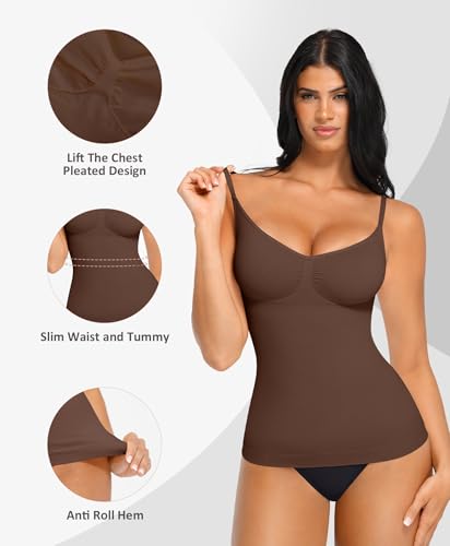 FeelinGirl Womens Tank Top Shapewear Tummy Control Tops Slimming Cami Tank Seamless Compression V Neck Camisole
