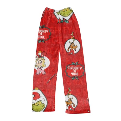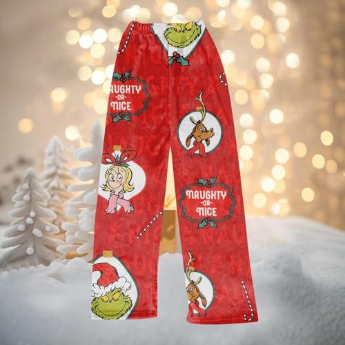 HTHLVMD Womens Fleece Christmas Pajama Pants Ladies Cute Holiday Waist Relaxed Fit Winter Long Pj Pants for Women