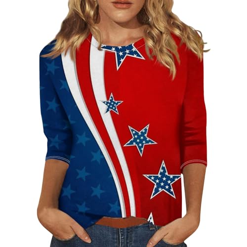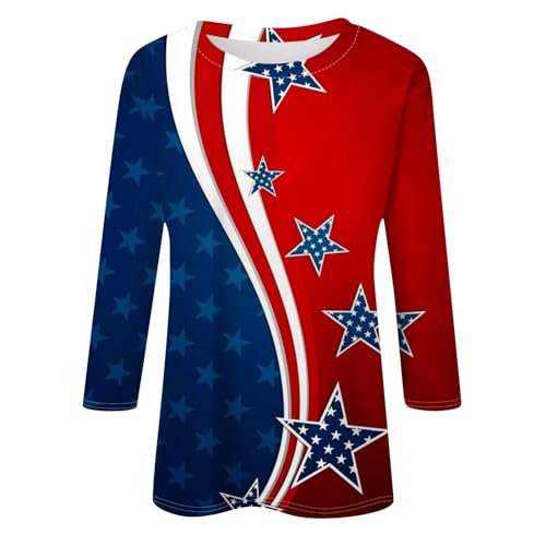 women’s 3/4 sleeve independence day print most sensible / summer tops for girls 2024 stylish / mothers day gifts / plus size tops for girls / 4th of july tops for girls / independence day shirts