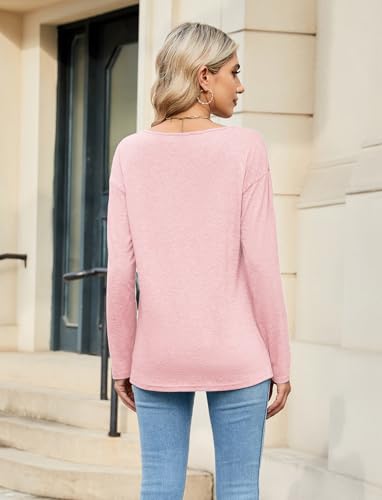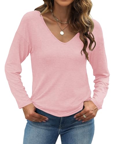 Sherosa Womens T Shirts V-Neck Long Sleeve Loose Fit Shirts Casual Solid Basic Tops