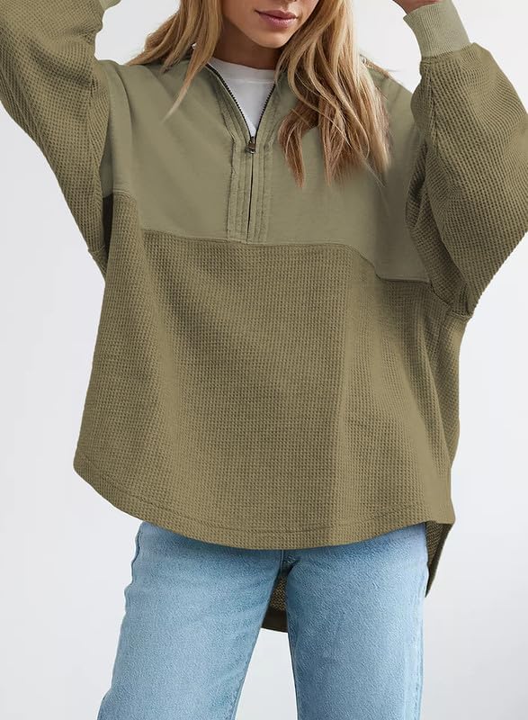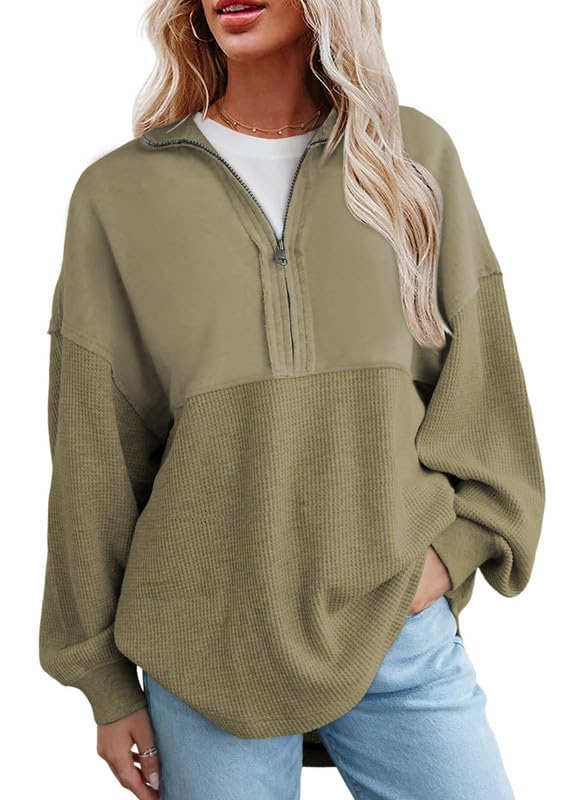 Specification: SHEWIN Womens Sweatshirt Casual Waffle Knit Half Zip Pullover Loose Long Sleeve Tops Fall Outfit Clothes 2024
