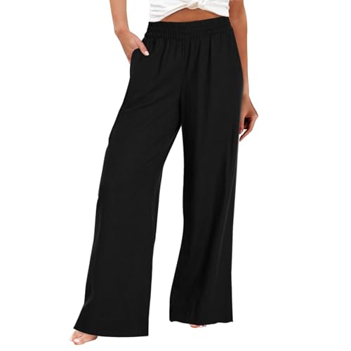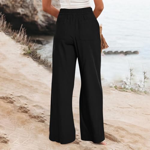 Women Wide Leg Pants High Waisted Cotton Linen Palazzo Lounge Pant Business Casual Paperbag Trousers with Pocket