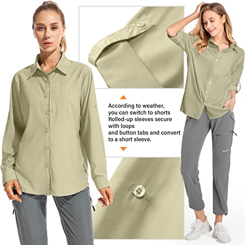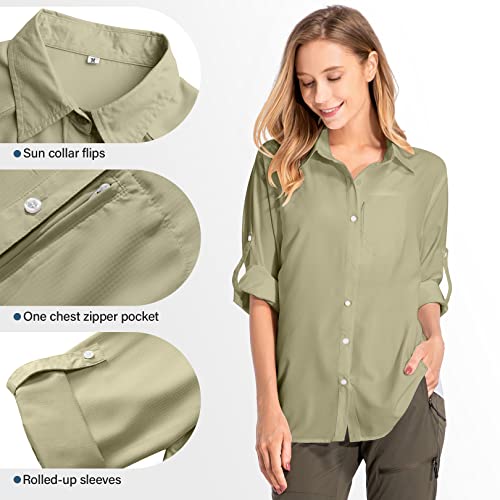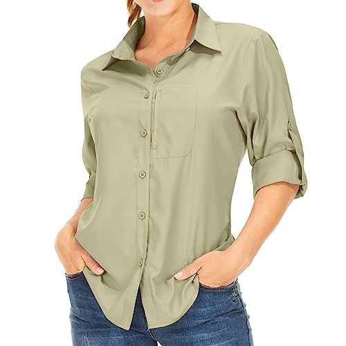 Women’s Long Sleeve Safari Clothes UPF 50+ Hiking Fishing Shirts,Sun Protection Quick Dry Light Cooling Shirts