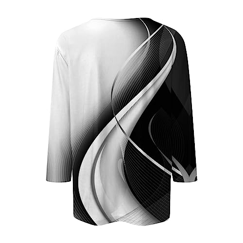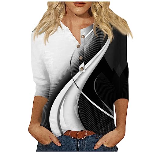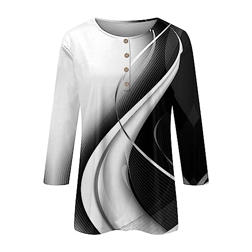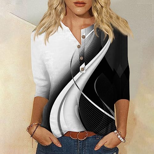 Womens Plus Size Summer Tops 3/4 Sleeve Trendy Printed Graphic Tees Button Down Blouses Dressy Casual Cooling T Shirts