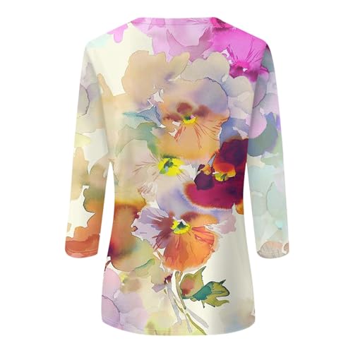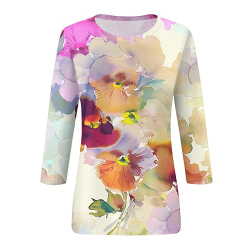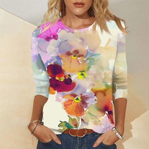 Womens Summer Tops Dressy 3/4 Sleeve Shirts Floral Print Tunic Blouses 2024 Womens Tops Casual Basic Tees