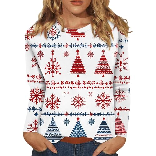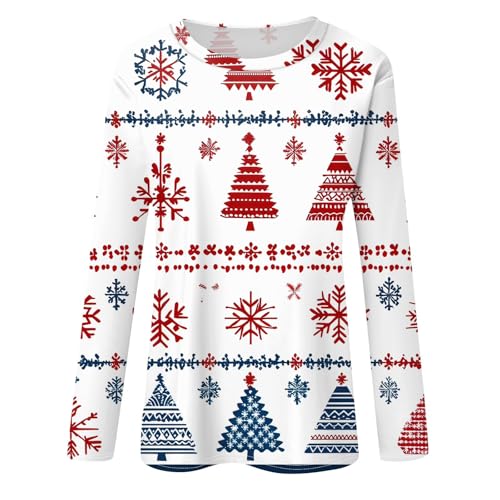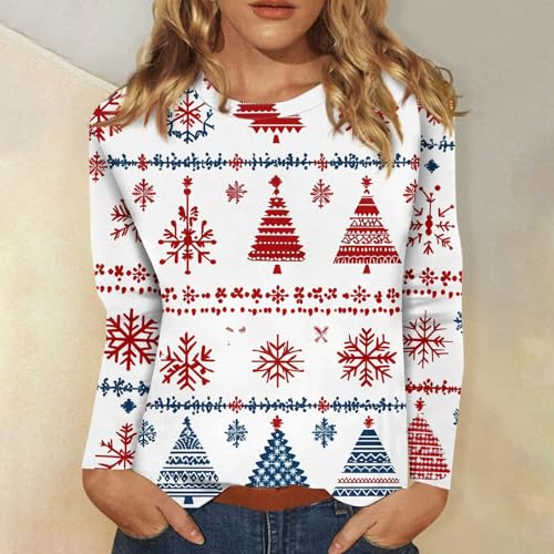 Xmas T Shirts for Women Plus Size Funny Christmas Blouses Cute Crewneck Pullover Fall Long Sleeve Tops