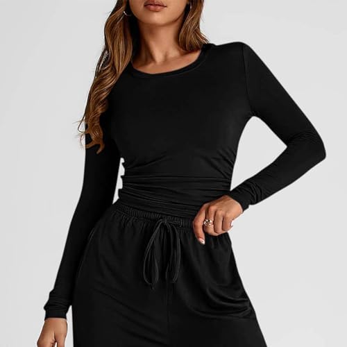 Women’s Long Sleeve Baselayer Tops Slim Fit Long Sleeve Crewneck Undershirts Solid Color Casual Going Out Tops