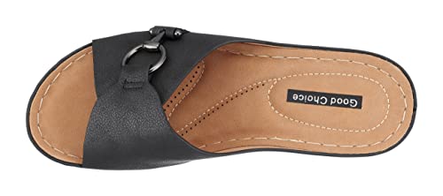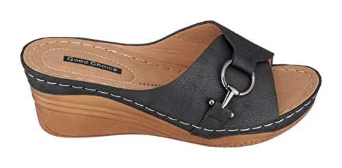 G.C. Shoes Womens Memory Foam Wedge Sandals, Open Toe Mid Heel Platform, Comfy Vegan Leather Buckle Strap Slides, Bay