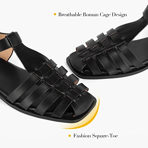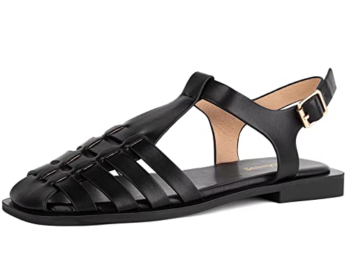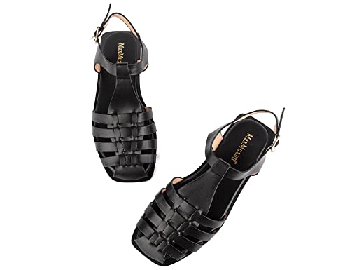 MaxMuxun Women’s Closed Toe Flat Sandals Comfortable Ankle Strap Cut Out Cage Summer Roman Shoes