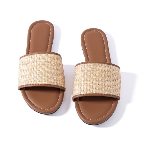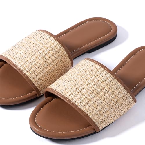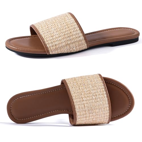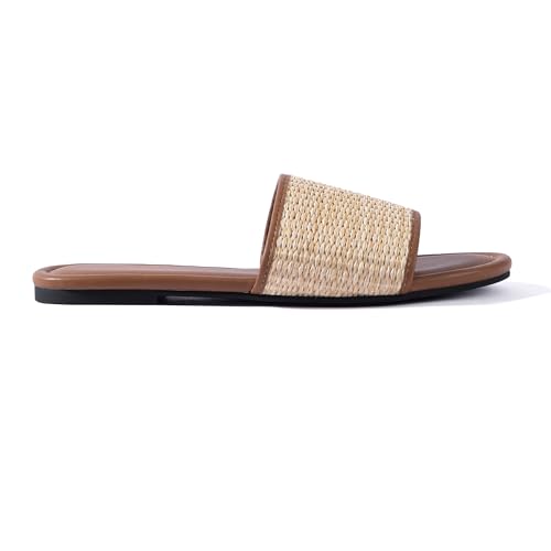 Mtzyoa Women Flat Sandals Braided Leather Nude Summer Dressy Fashion Evening Party Wedding Sandals