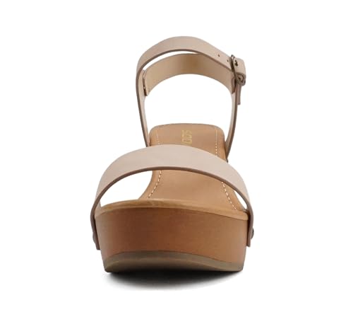 Soda CHIVAS ~ Women’s Bold Buckles Studded Wedge Sandal