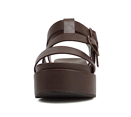 Soda “STELLAR” ~ Women Flatform Multi Strap Double Buckle Open Toe Ankle Strap Platform Wedge Sandals