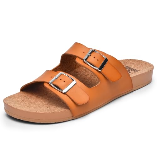 Womens Sandals Arch Support Beach Slides for Women Orthotic Summer Causal Cork Footbed Adjustable Lightweight Comfortable Slip on Cushion Cute 2 Strap Flat sandalias de mujer