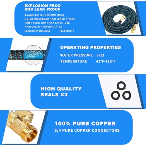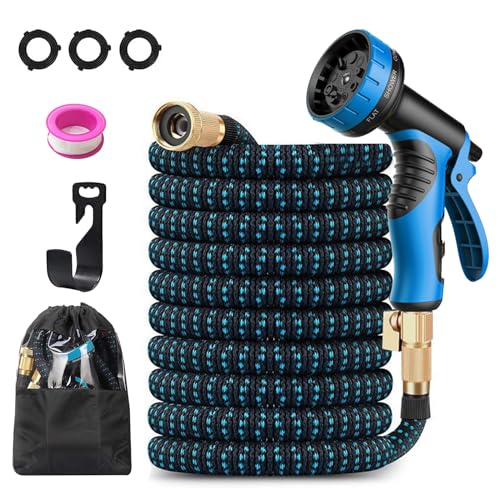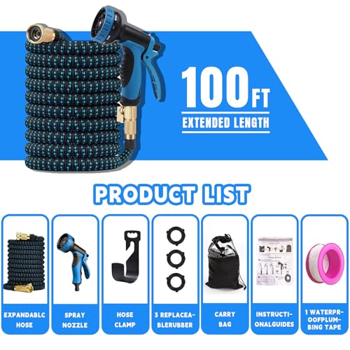 Specification: 100Ft Garden Hose,Expandable Lightweight Flexible Water Hose With 10 Function Nozzle,Durable Collapsible Latex Core & Copper Bullet Water Hose For Gardening Lawn Car Pet Washing,Black & Blue