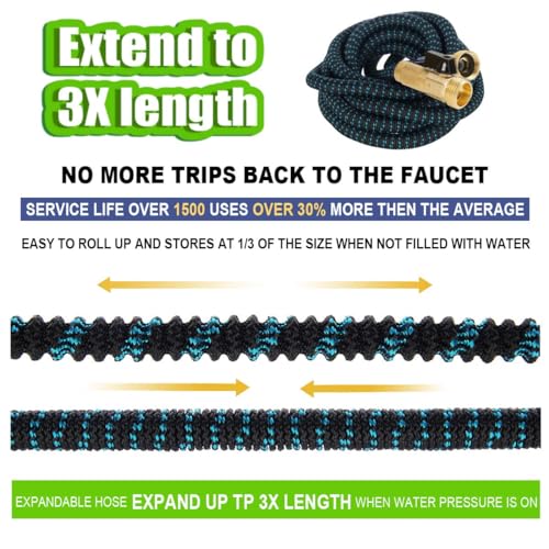 Specification: 25FT Expandable Garden Hose 3X-10 Function Nozzle, Heavy Duty Flexible Water Hose with 3/4” Solid Fittings & Storage Bag, 3300D Strength Fabric-Ideal for Gardening, Car Washing, Pet Bathing (BLUE)