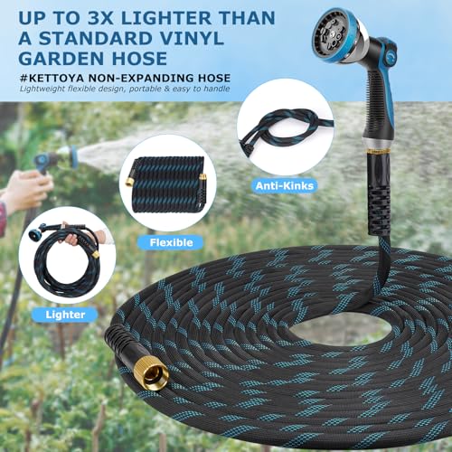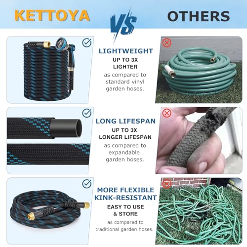 New-Gen Non-Expanding Garden Hose: KETTOYA’s new water hoses break through the limitations of traditional hoses, offering a new non-expandable hose that may be lighter, more durable, flexible, and kink-resistant. Enjoy your garden life. We offer a 2-year warranty, and when you encounter any issues, feel free to contact us; we’re going to help within 12 hours.