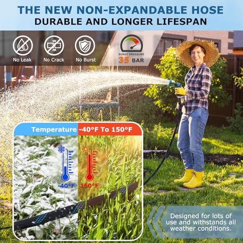 Durable & Long-lasting: KETTOYA water hoses are made with the latest technology and high-quality materials, ensuring it is durable and long-lasting. The hose withstands heavy use and harsh weather conditions, assisting you in completing gardening and cleaning tasks without worrying about the risk of cracking.