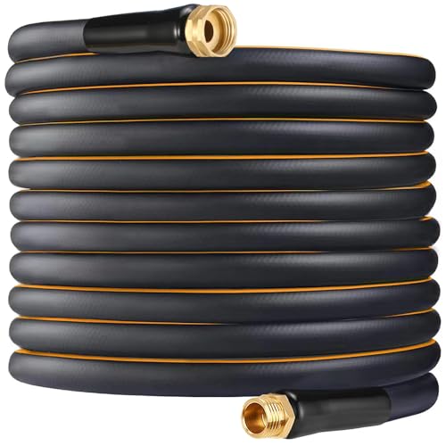 Specification: Garden Hose 200ft x 5/8 in Heavy Duty, Flexible and Lightweight Water Hose, Burst 600 psi, Kink-less Hybrid Rubber Hose for Backyard, 3/4” Solid Metal Fittings for All Your Watering Need