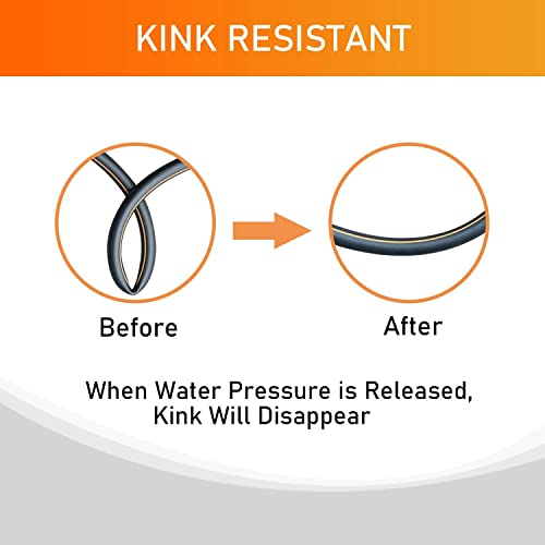Kink Less and Easy to Use: Just open the faucet and lay flat the hose under the normal water pressure, the kink will disappear. The special flexible material makes this waterhose easy to uncoil with no memory, it will not kink when water is full in the rubber water hose which is easy to maneuver