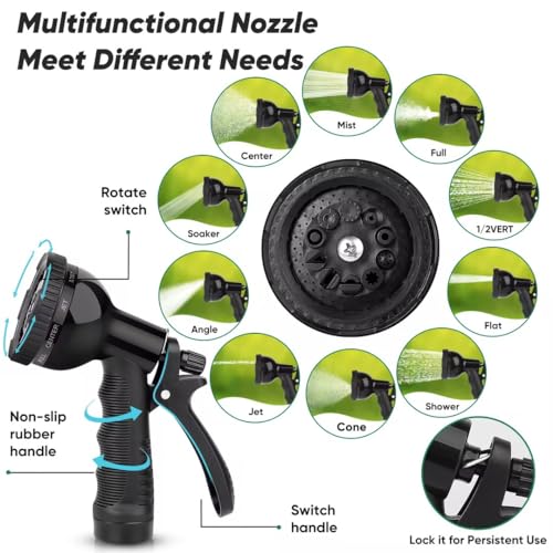 A couple of uses: The garden hoses are equipped with 10 functional nozzles and leak-proof gaskets, which can adjust the size of the water glide according to needs and save water bills. The rubber pattern on the take care of can prevent slipping and provide the best gripping experience. Garden hoses can serve A couple of purposes such as garden, yard and lawn watering, daily cleaning and water storage.