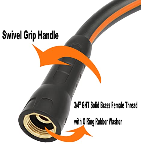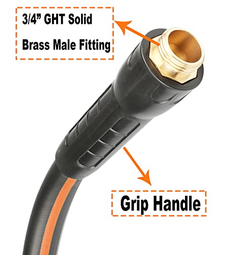 Specification: Hybrid Garden Hose 5/8 IN. x 25 FT, Heavy Duty, Lightweight, Flexible with Swivel Grip Handle and Solid Brass Fittings, Gray+Orange