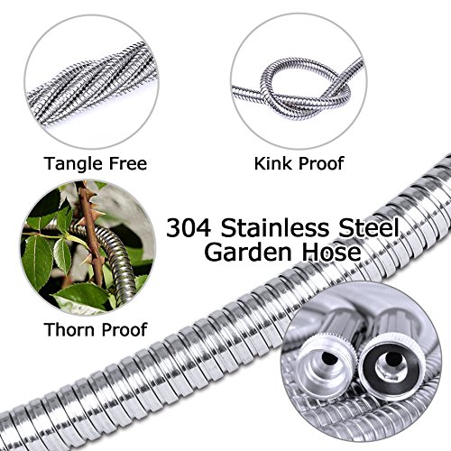 Supreme durability, you don’t need to purchase garden hose every year: Made from industrial grade heavy duty 304 stainless steel, lightweight and durable, this ultimately increases the lifespan of the hose. The most obvious benefit provided by a metal garden hose is supreme durability. It’s not like an expandable hose that’s easy to fray, tear and wear