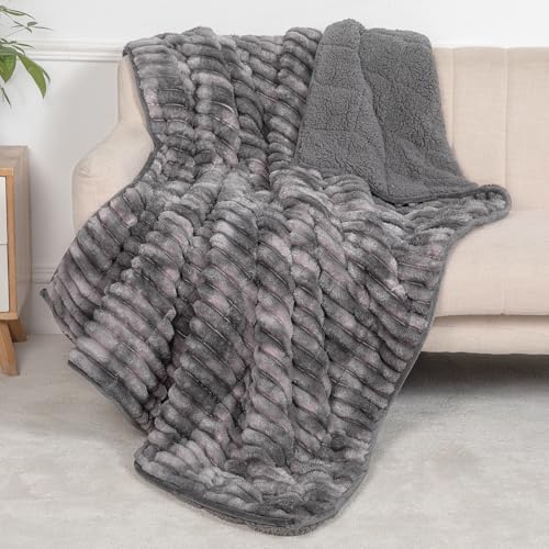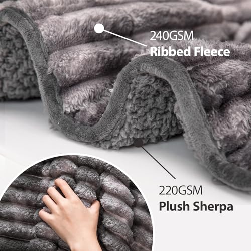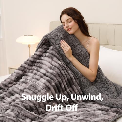 Sherpa Fleece Weighted Blanket for Adults Queen Size 15lbs, Soft Cozy Flannel Heavy Throw Blanket for Relax and Deep Sleep, 3D Ribbed Warm Fleece Weighted Blankets for Couch and Bed, 60″ x 80″