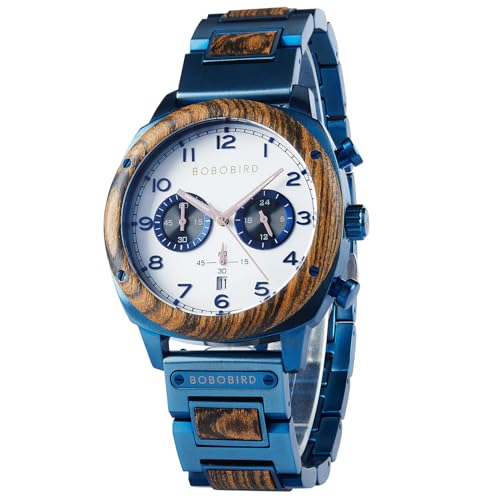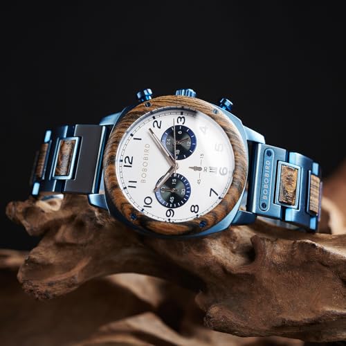 This Wooden Watches for Men is a unique design, with a Multifunctional Chronograph Military Japanese Movement Watch with Date Display Luminous Stylish with Black Green White Blue dial. This Wooden watch is manufactured from top of the range natural wood with a superior hardened mineral glass, it’s durable and comfortable to wear. The band is manufactured from top of the range leather, which is comfortable to wear and durable. This Wooden watch is an ideal gift for any occasion, such as Christmas, birthdays, weddings, anniversaries, and so forth. This watch is waterproof, but no longer water-resistant. Please keep away from contact with water.