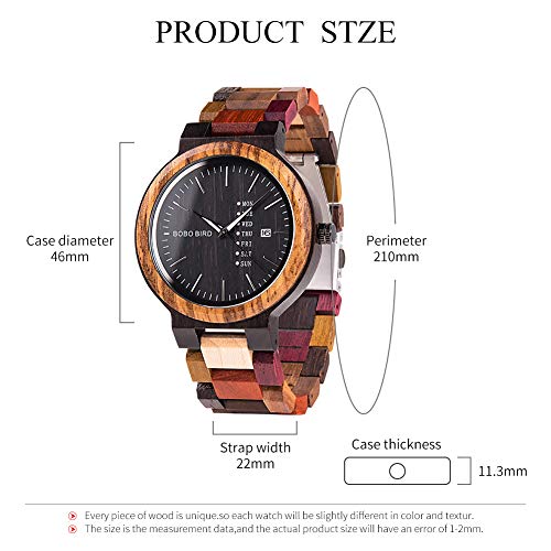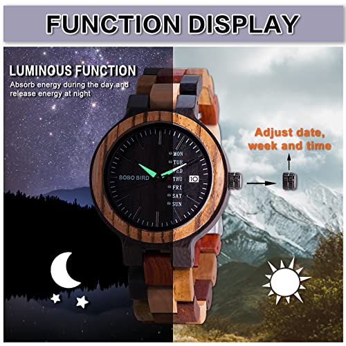 Specification: GUANKE Men Wooden Watches Colorful Bamboo Watches Week & Date Display Quartz Couples Watches Handmade Casual Multifunction Wood Wristwatch for Men