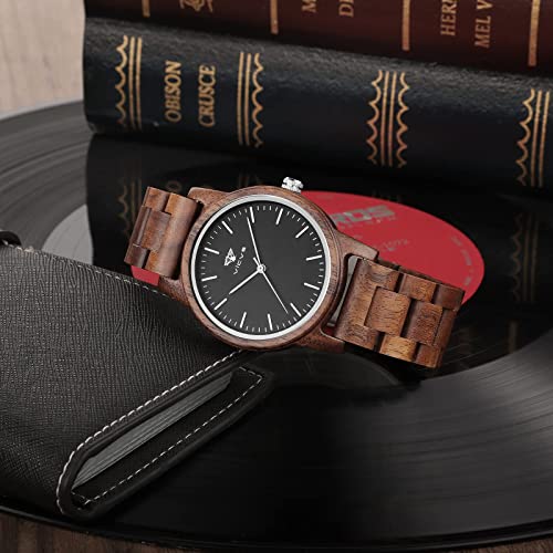 Wooden Watches for Men and Women, Natural Walnut/Olive Wood Japanese Quartz Chronograph, Adjustable Strap, Military Sports and Leisure