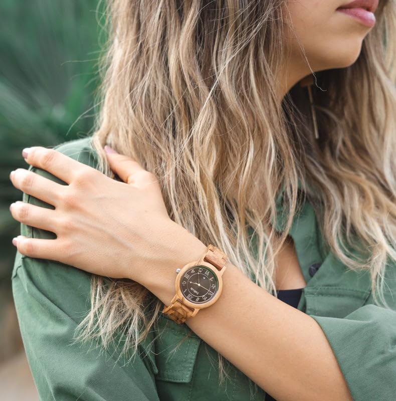 Specification: Zeitholz Wooden Watch for Women, Wolkenstein Analog Watch 36mm, Made from Natural Wood with Japanese Quartz Movement and Monthly Calendar.